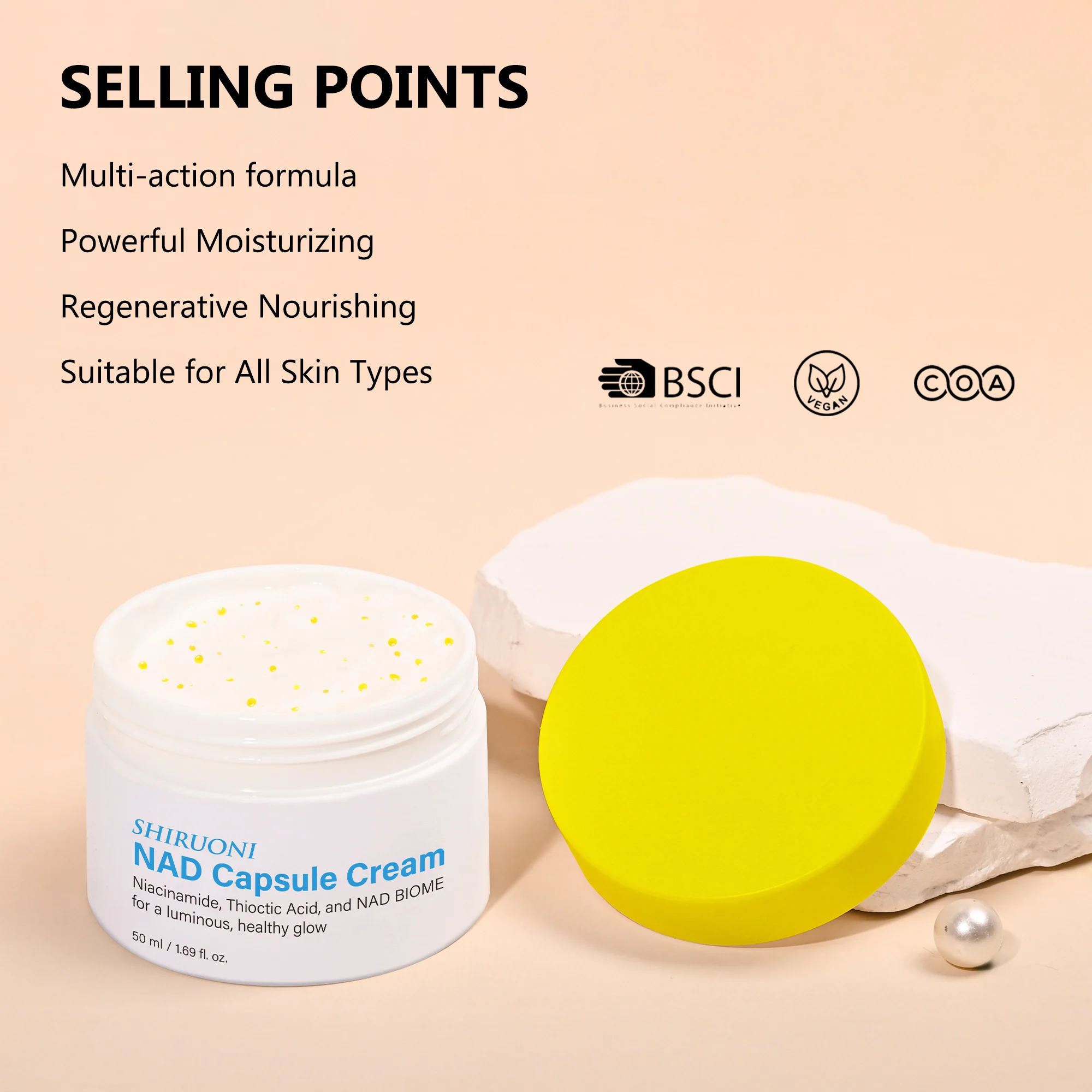Private Label Organic Vegan Peptide NAD Anti-Aging Moisturizing Micro Capsule Face Cream Skin Anti-Wrinkle Repair Deep Hydration