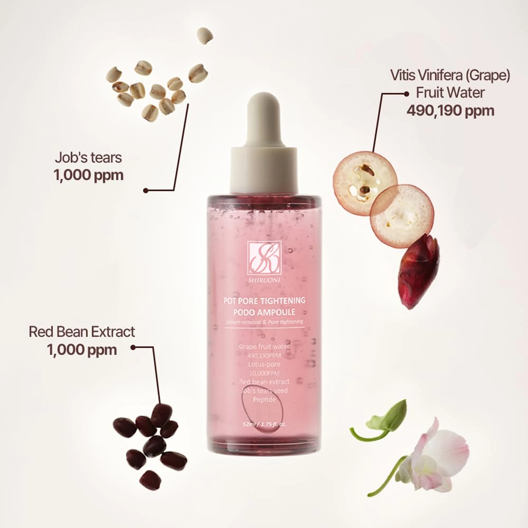 Private Label Natural Herbal Red Bean Grape Seeds Hydration Facial Serum Whitening Smooth Essence Factory Wholesale