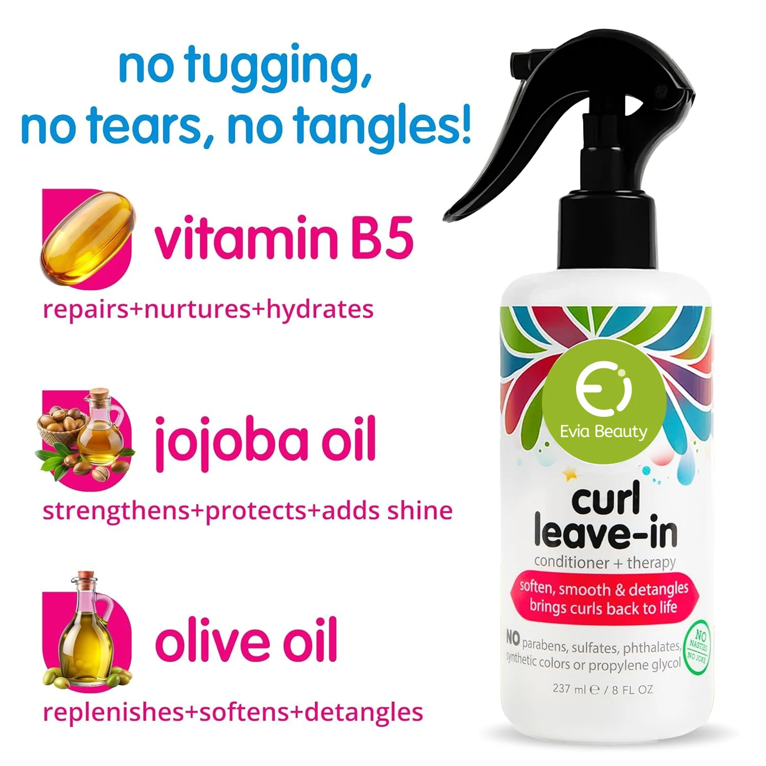Kids Curl Leave-In Conditioner Evia Therapy Detangler Vitamin B5 Jojoba Olive Oil Softens Smooths Anti-Frizz Natural