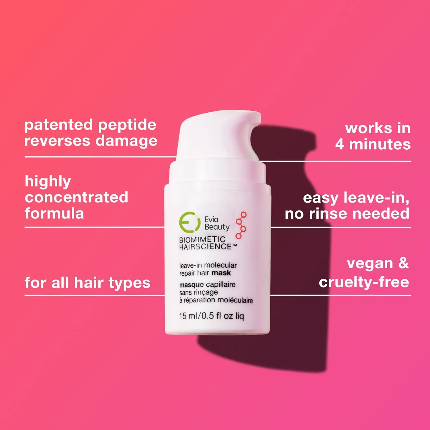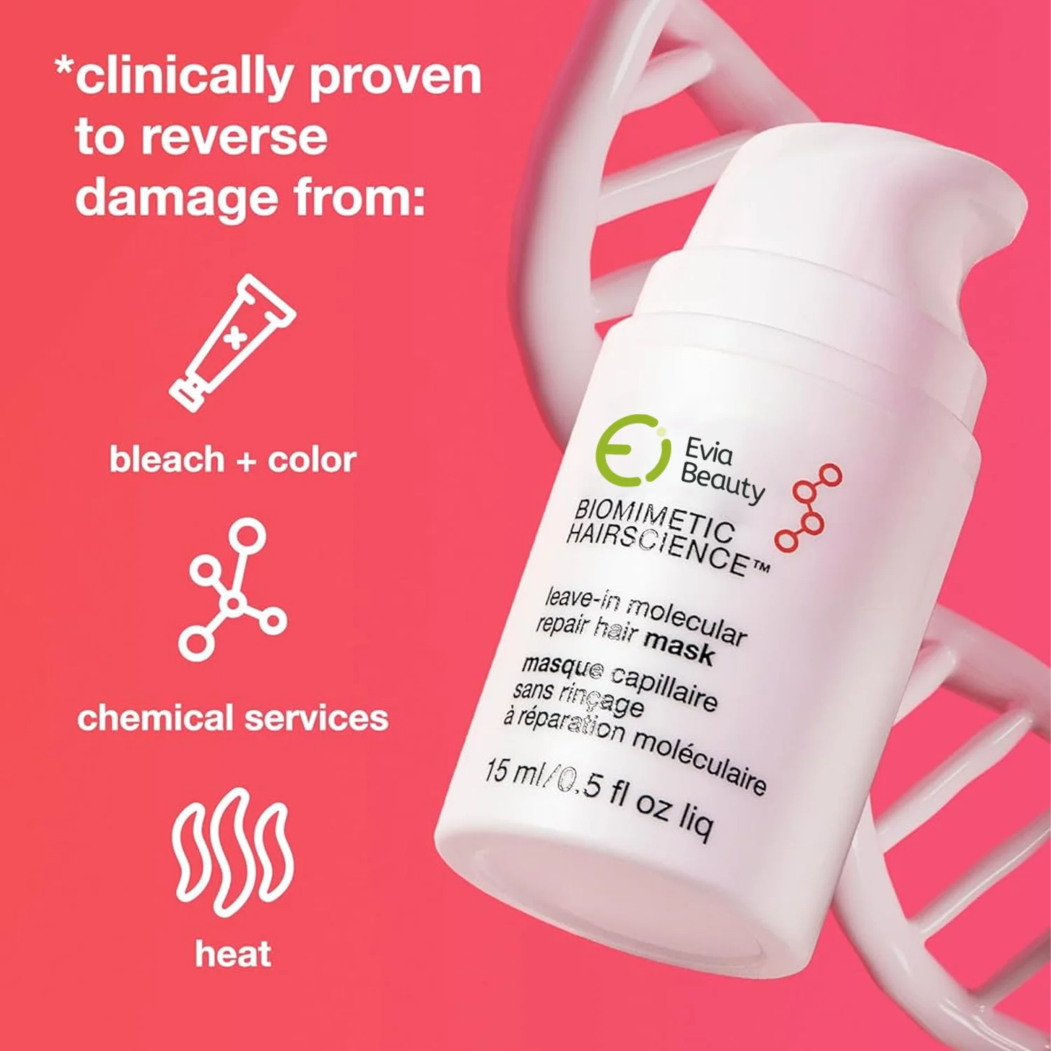 Evia Biomimetic Leave-In Hair Mask Molecular Repair for Damaged Bleached Hair Keratin Strength Argan Oil Infused 4 Min Treatment