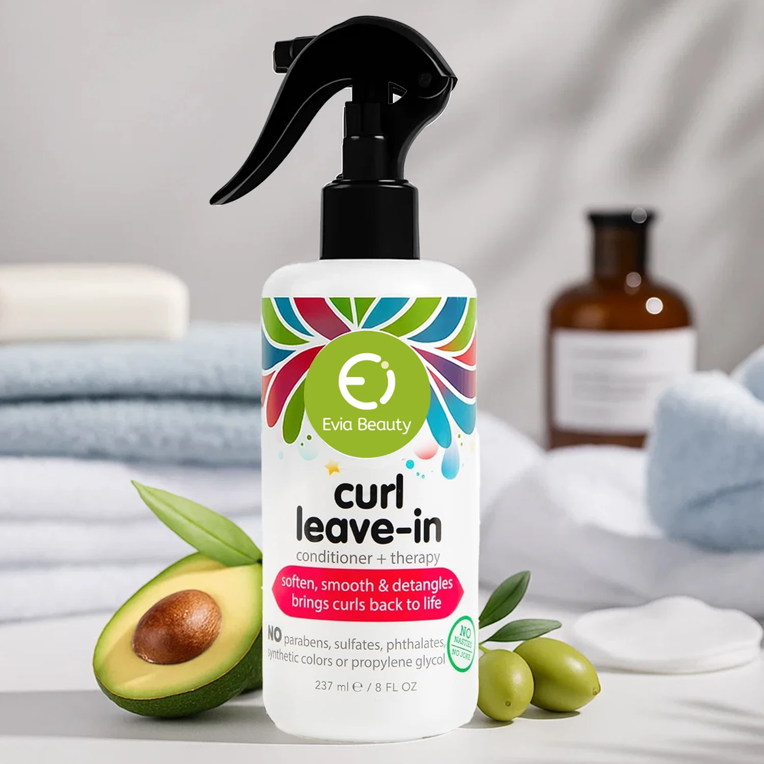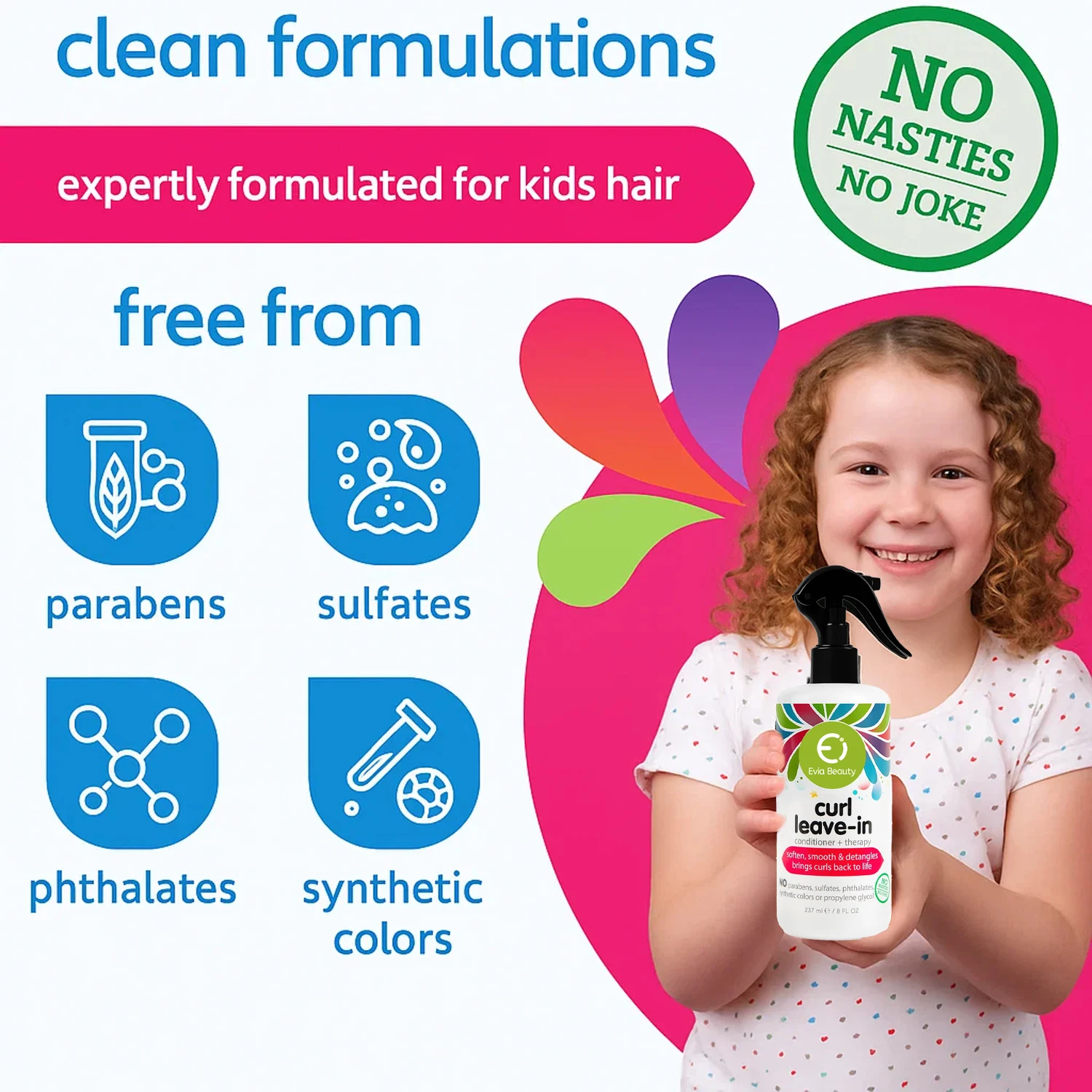 Paraben-Free Curl Detangler Leave-In Spray Evia Kids Therapy Vitamin B5 Jojoba Oil Olive Oil Smooths Softens Frizz Control 2026