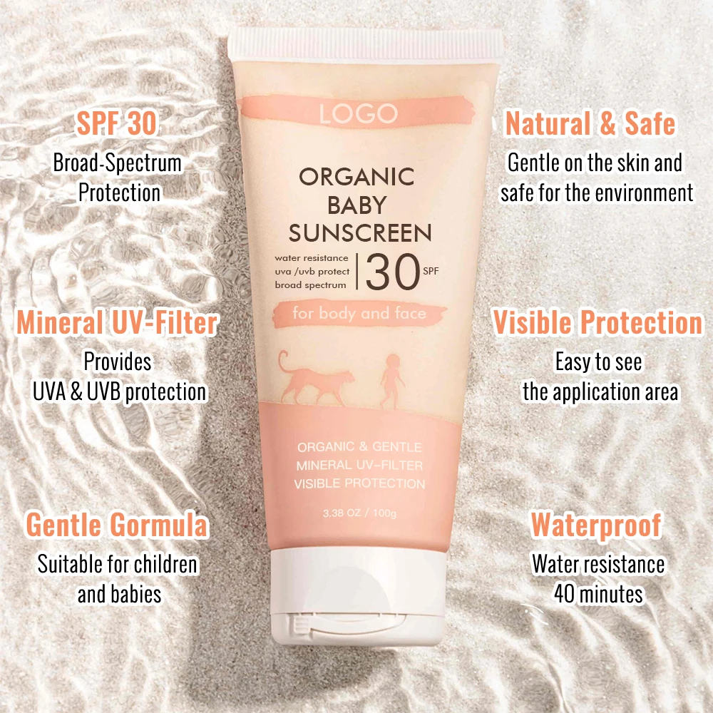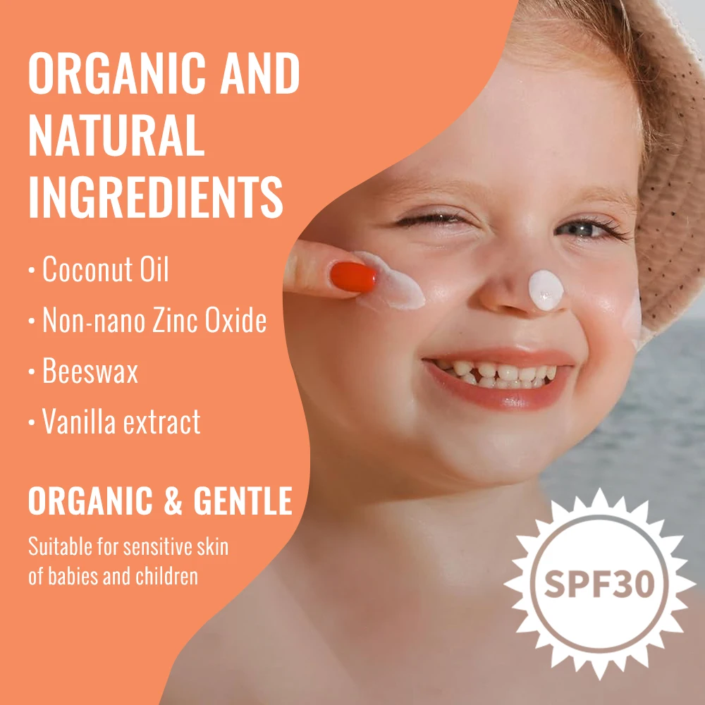 Custom Baby Sun Defense Water and Sweat Resistant Coconut Oil Moisturizer Natural Mineral Sunscreen for Baby and Children