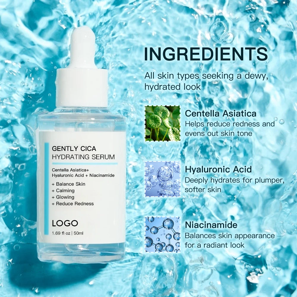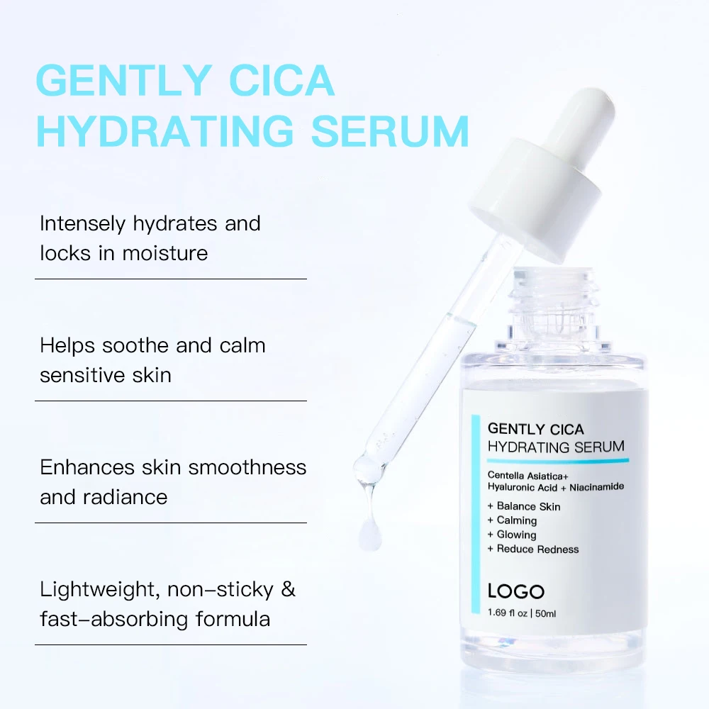 Private Label Lightweight Balance Skin Lasting Hydration Non-sticky Hyaluronic Acid Gently CICA Hydrating Serum for Face