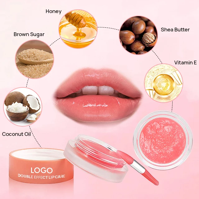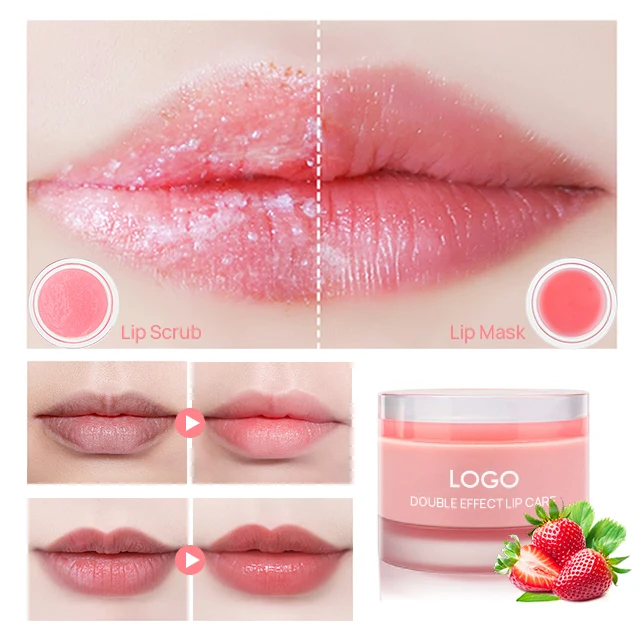 Wholesale Oem Pink Strawberry Natural Moisturizing Private Label Exfoliating Lip Scrub and Balm Set With Applicator