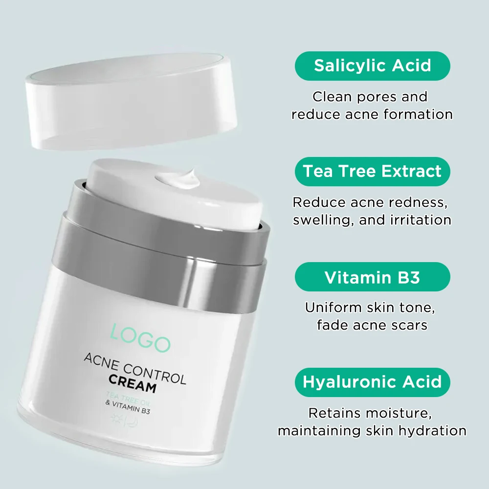 Oem Odm Custom Logo Hyaluronic Acid Moisturizer Clean Pore Reduce Redness Skin Cream for Acne Scars Skin