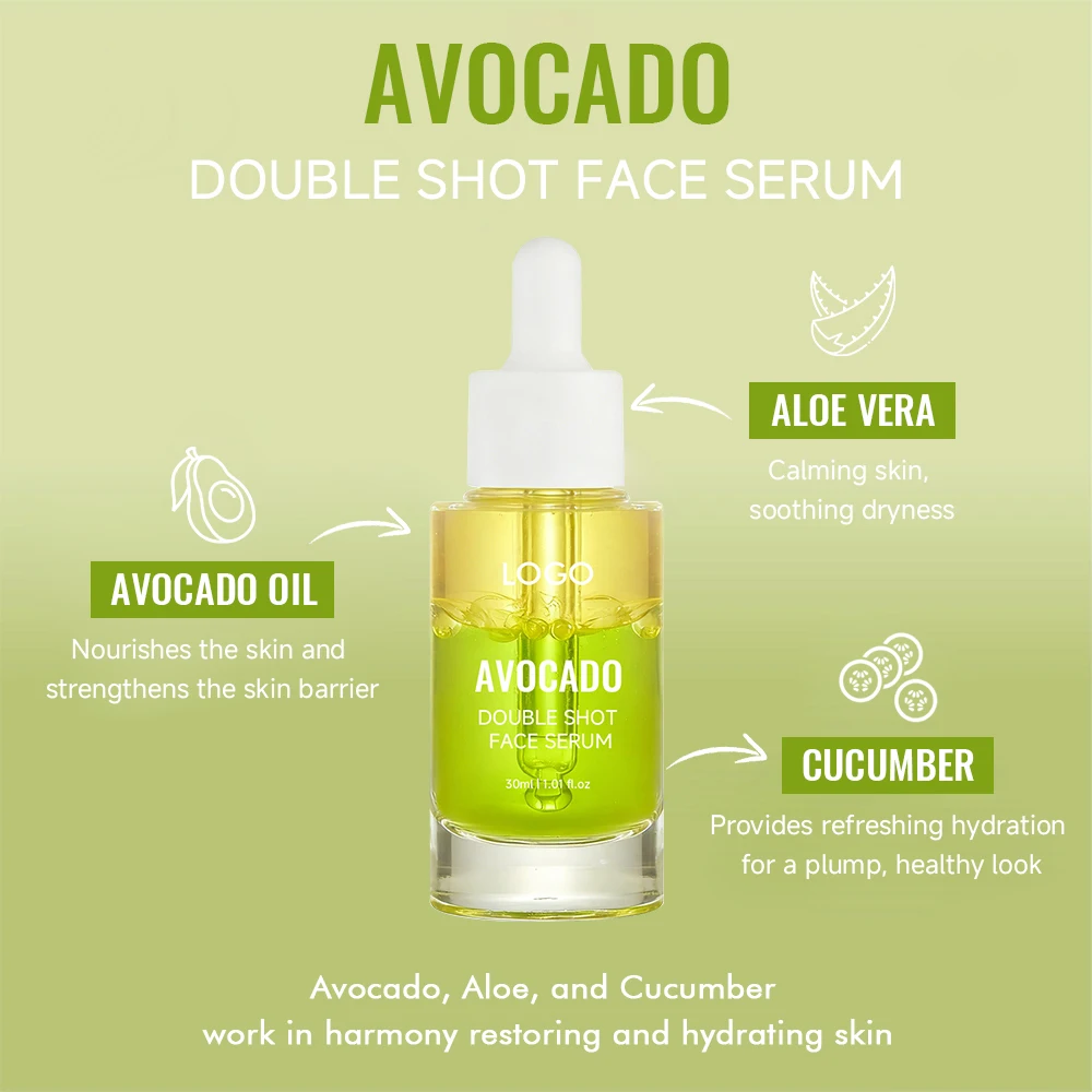 Private Label Cucumber Nourishing Restoring Mid-weight Avocado Double Shot Face Serum for Dry Skincare