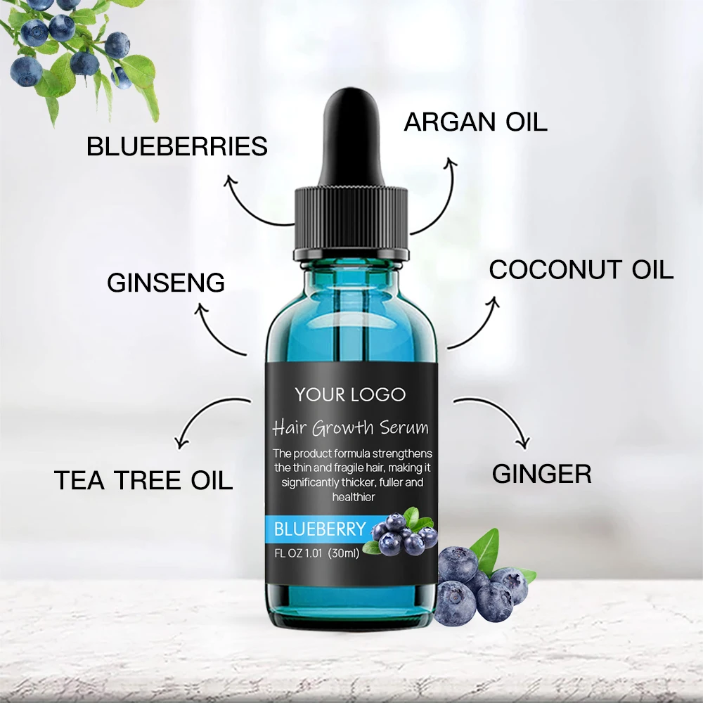 30ml Custom Label Organic Lavender Seed Rosemary Oil Blueberry Hair Growth Serum Oil for Men and Women