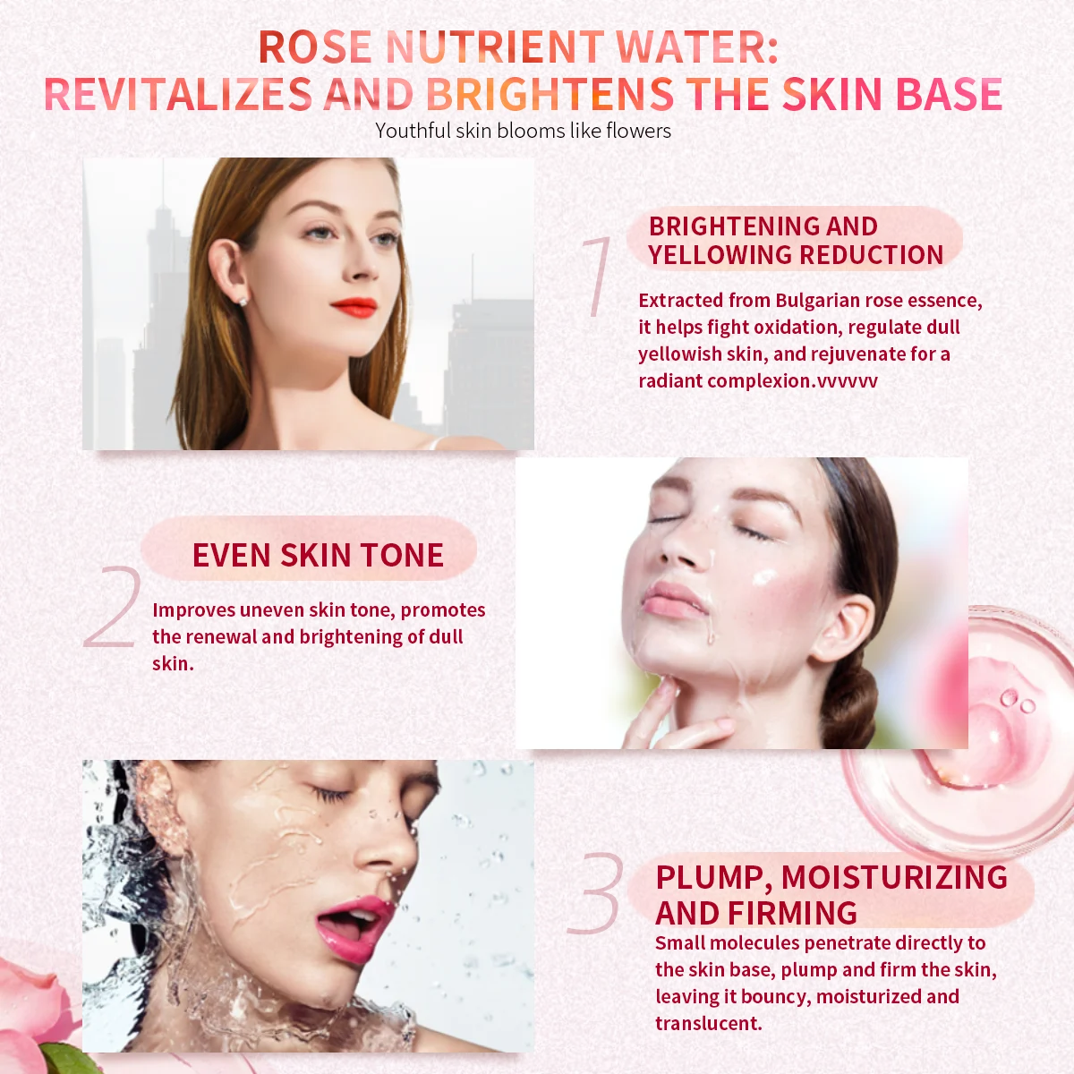 Organic Rose Hydrosol Liquid Additive-Free Hydrating Moisturizer Brightens Skin Tone 100% Pure Face & Body OEM Supply