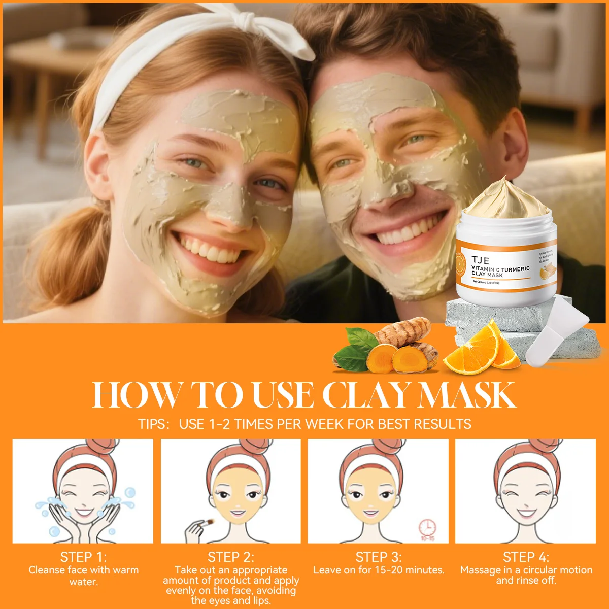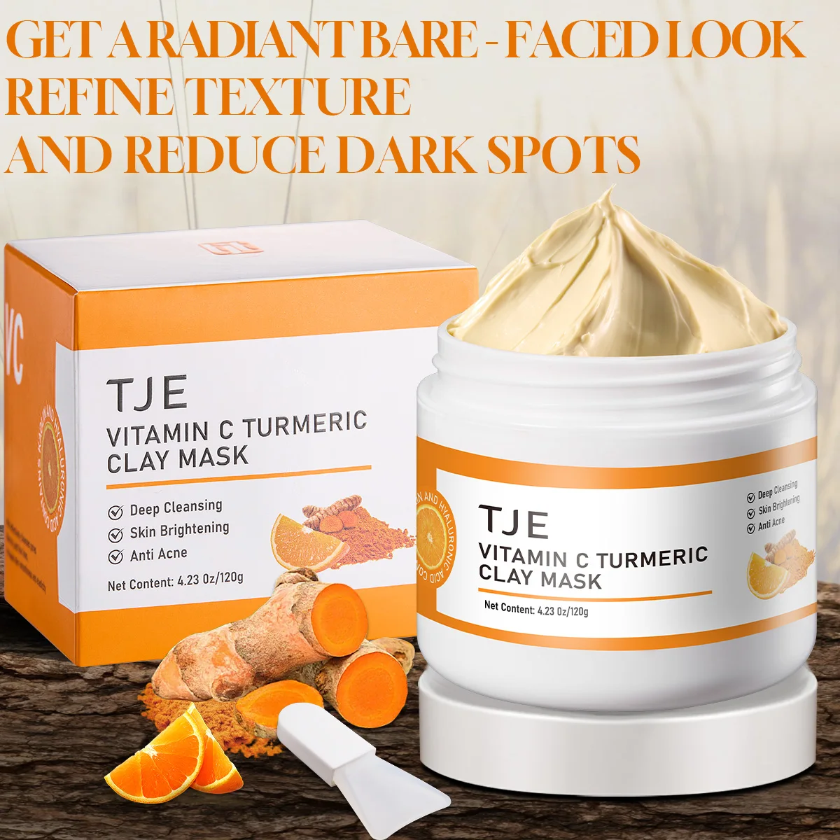Vitamin C Turmeric Clay Mask Dark Spots Dull Skin Blackheads Skincare Facial Mask for Cleansing Pores Moisturizing Clay Mask
