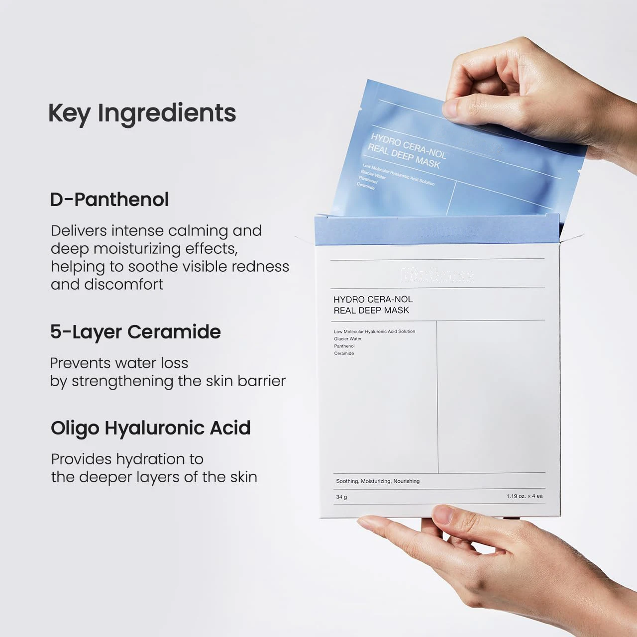 Hydro Cera-nol Real Deep Mask Overnight Hydrogel Hydrating Facial Mask for Sensitive Skin Redness Reducing Quick Soothing Effect
