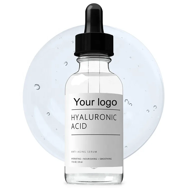 Custom Logo Hyaluronic Acid Serum for Anti-Aging Hydrating Lightening Dry Skin Fragrance-Free Face Plumping Product Sample