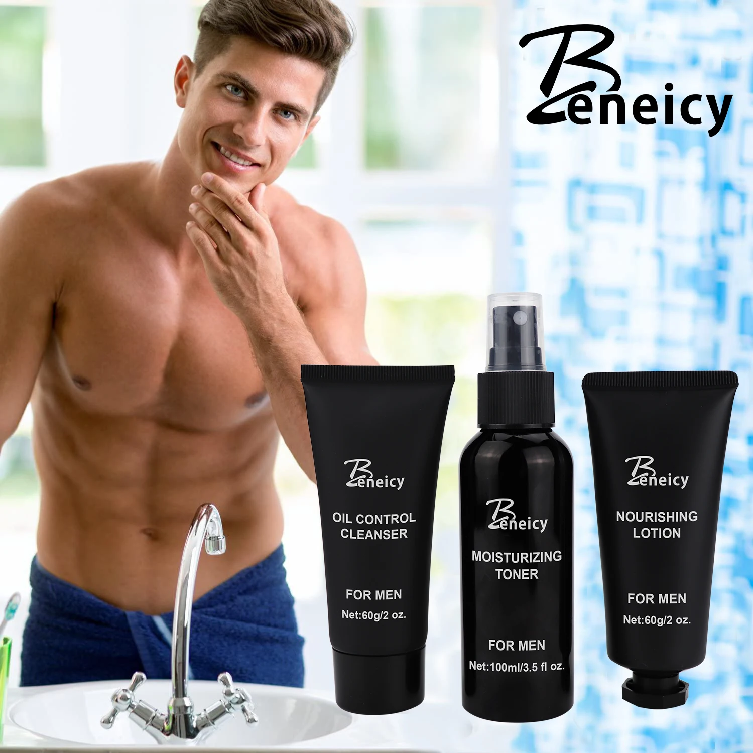 Natural Men's Face Wash and Toner Set Oil Control Facial Skin Care Products