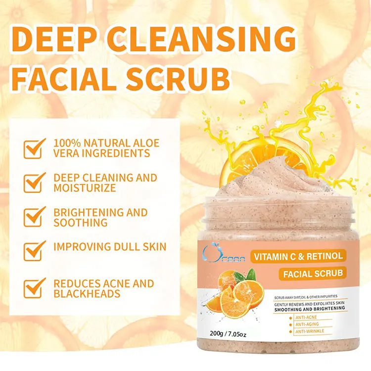 Private Label Exfoliation Face Scrub Whitening Deep Cleansing Vitamin C Oil Control Vitamin C Facial Scrub