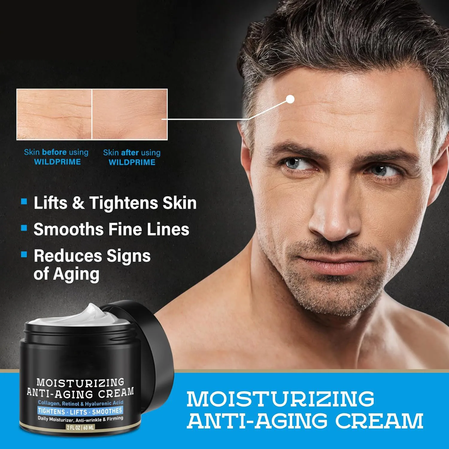 Men's Niacinamide Face Moisturizer Cream Hyaluronic Acid Vitamins E&A Day Night Wrinkle Shave Facial Skin Care Hydrating