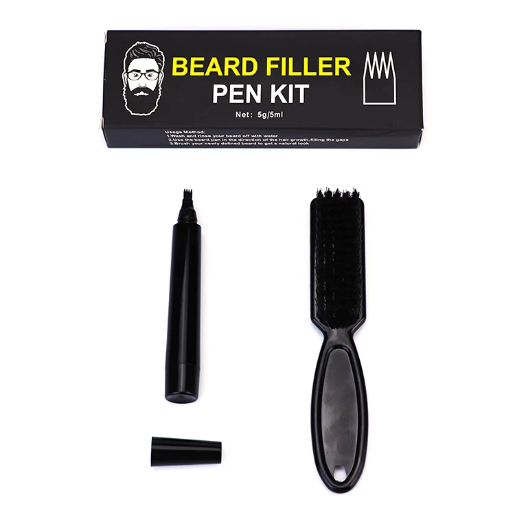 Hot Selling Custom Private Label Organic Clay Formed Waterproof Beard Filler Pen Set Moisturizer No Logo Beard Brush Beard Pen