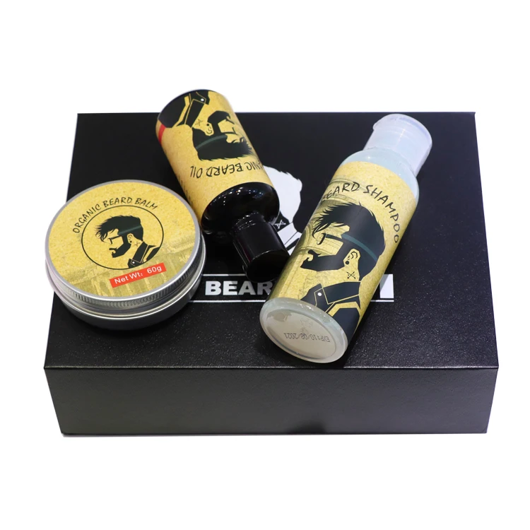 Custom 100% Organic and Natural Beard Growth Oil Balm Wax Kit Private Label for Men's Beard Care