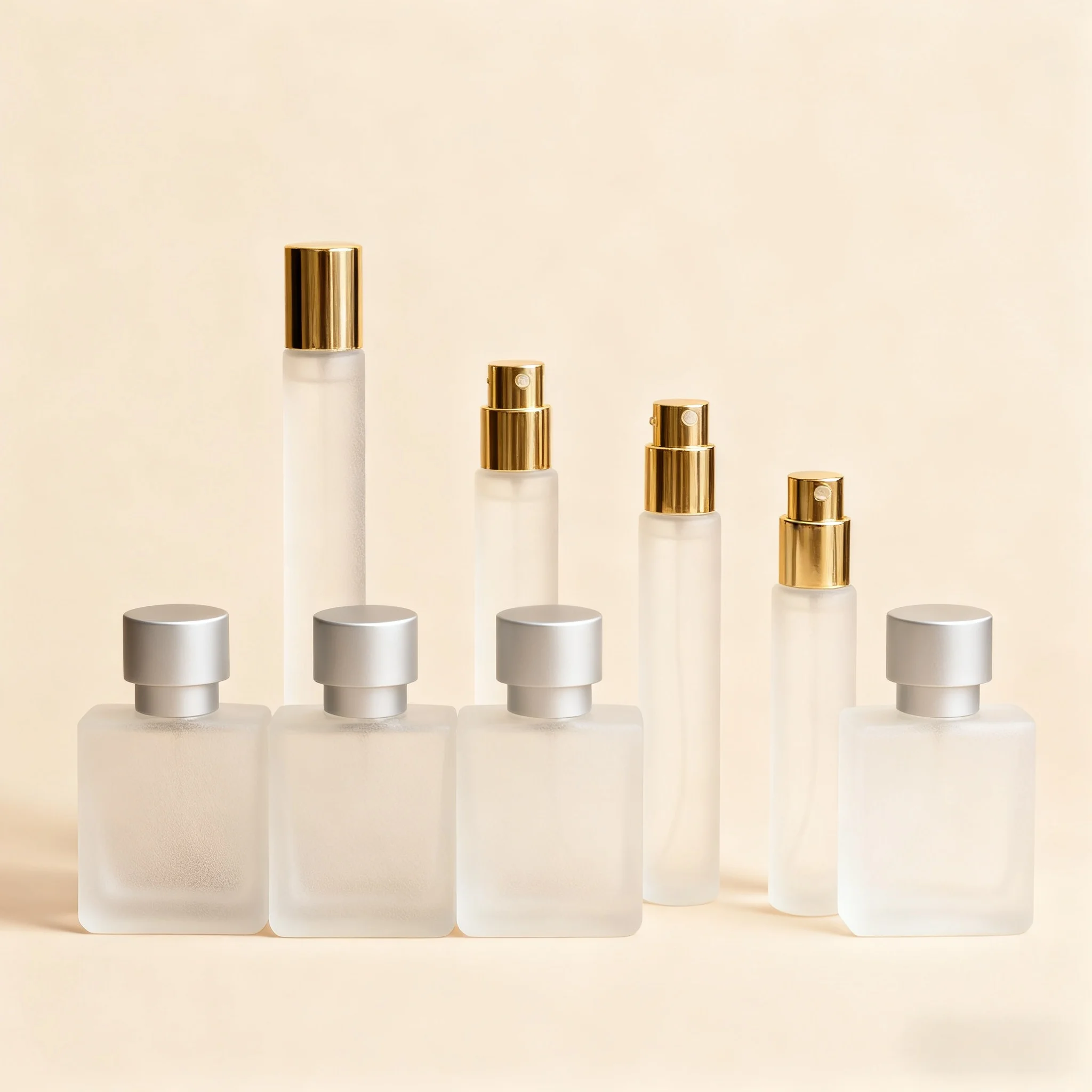 High Quality square Bottle Design with Gold Special Design Lid 20g 50g Jar 40ml 100ml 120ml Pump Bottle