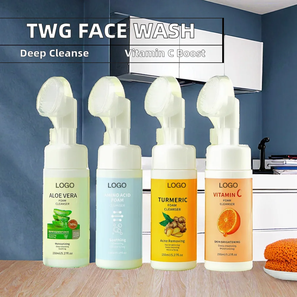 TWG Private Label Facial Cleanser Foaming Face Wash with Turmeric Vitamin C Aloe Vera Amino Acid Whitening Effect