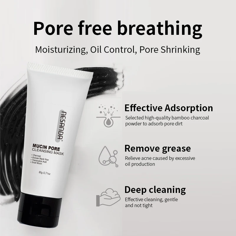 Hot Selling OEM ODM Natural Bamboo Charcoal Deep Cleansing Nose Black Head Moisturizing Hydrating Black Mud Mask