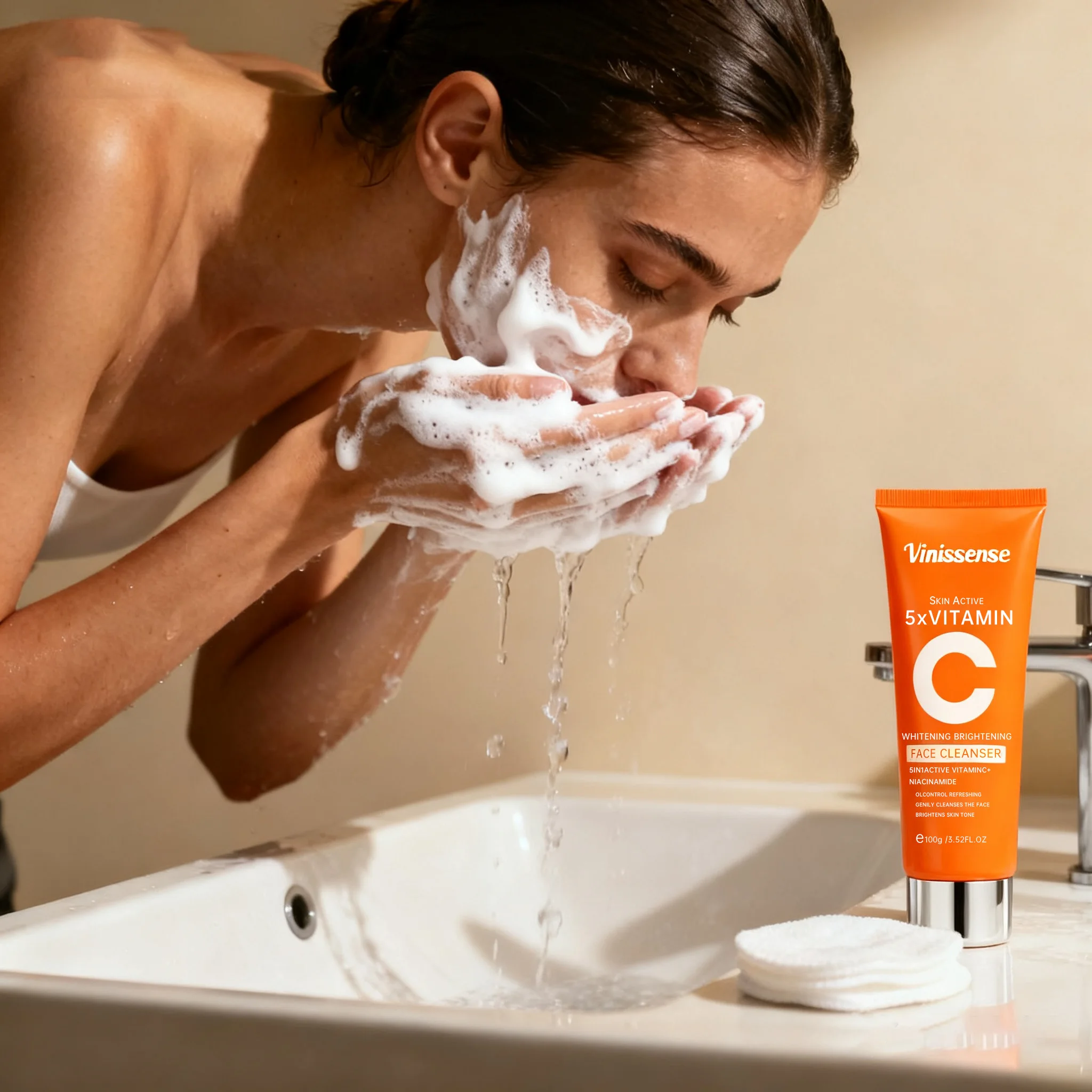 OEM Deeply Pore-Cleansing Whitening VC Hyaluronic Acid Face Wash Amino Acid Facial Cleanser Refreshing Deep Cleansing