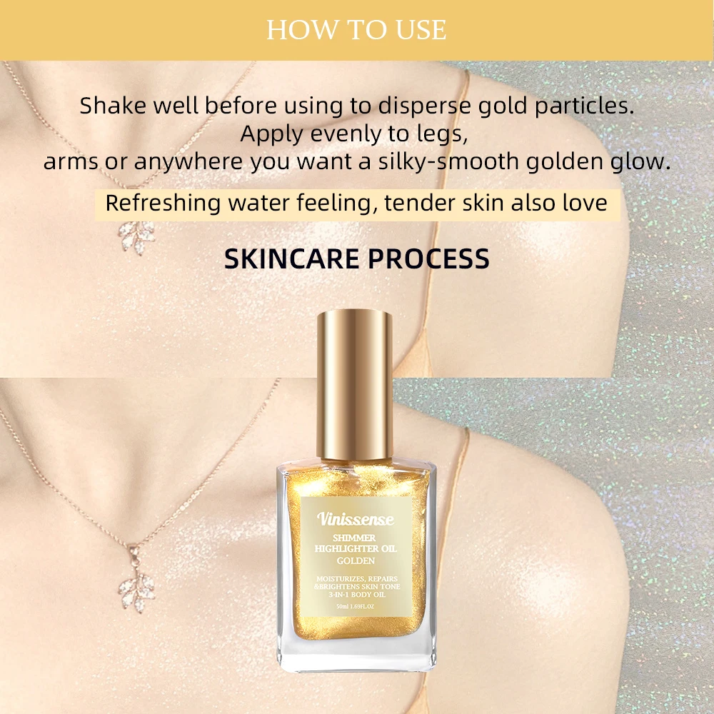 Custom Perfume Body Shimmer Oil Private Label Custom Glitter Bronze Vegan SPF Shimmer Body Oil Body Glitter