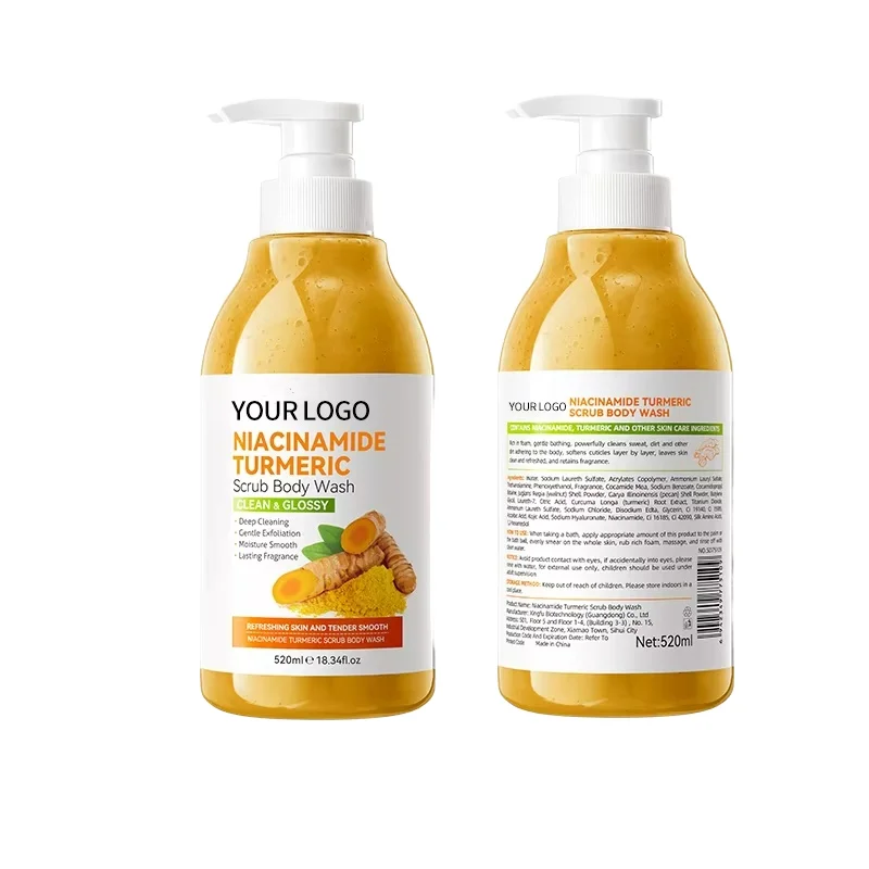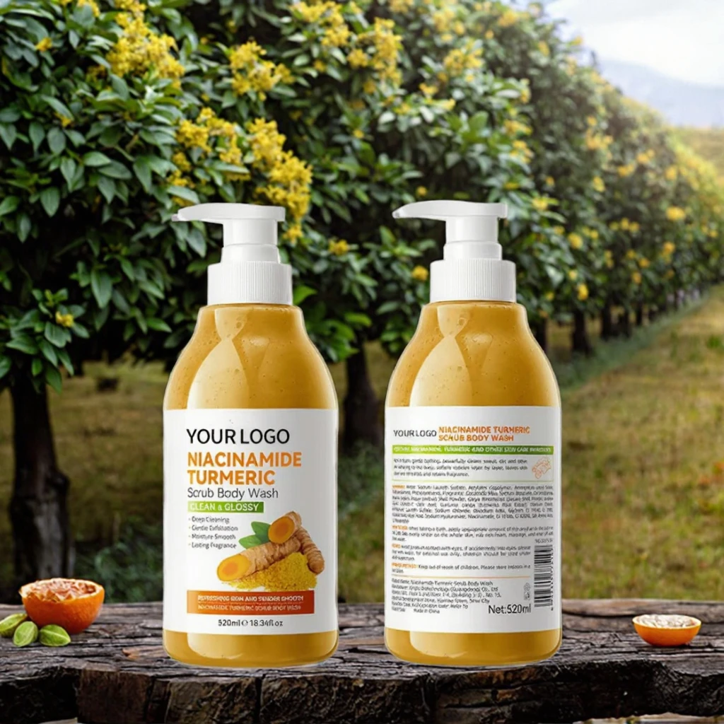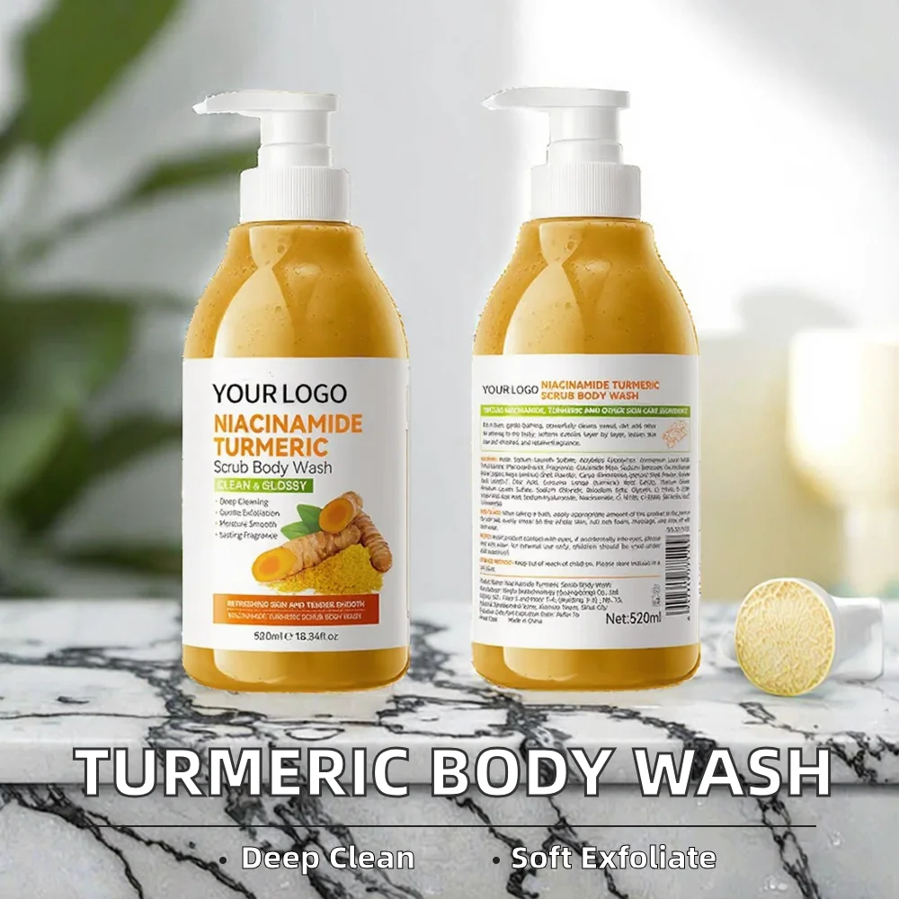 Wholesale Natural Turmeric Shower Gel Perfumed Moisturizing Body Wash for Whitening Exfoliating Niacinamide Liquid Skincare