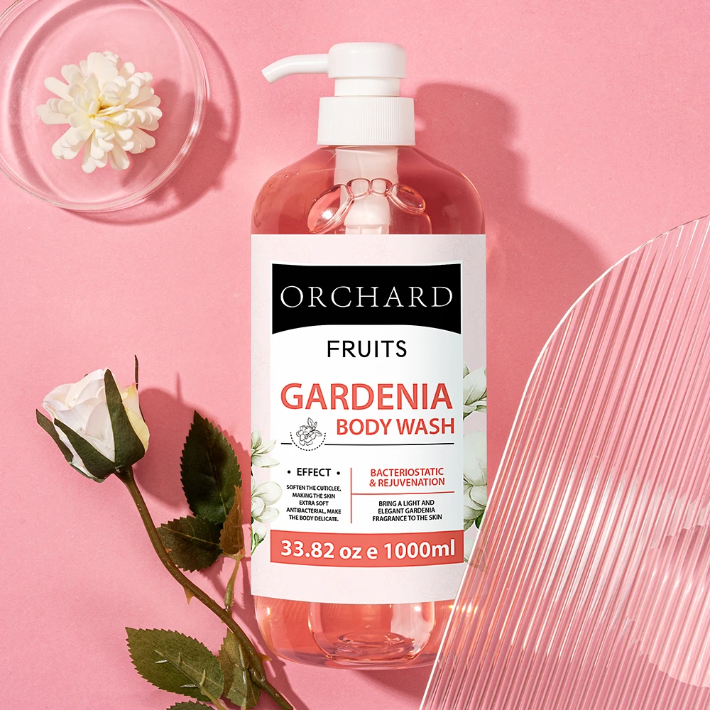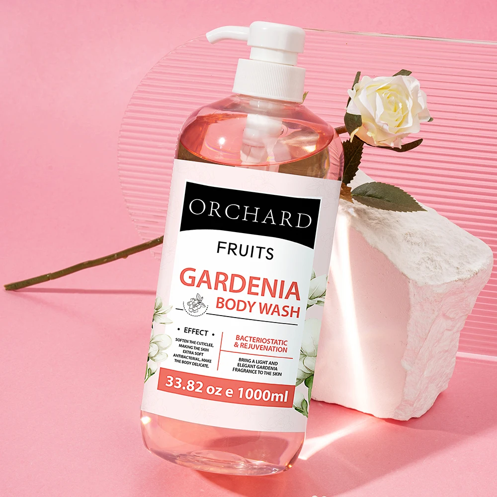 OEM Private Label 1000ml Gardenia Shower Gel Natural Soften Cuticle Antibacterial Bacteriostatic Rejuvenation Gardenia Body Wash