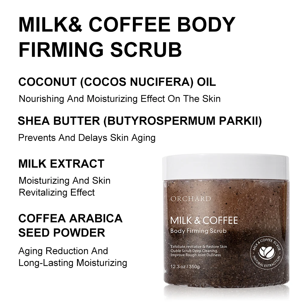 Private Label Wholesale Natural Organic Arabica Coffee & Milk Skin Whitening Sea Salt Sugar Raw Coffee Body Scrub