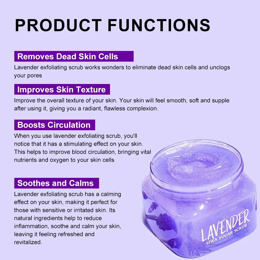 Hot Seller OEM Shea Butter Soothing Calm Exfoliating Lavender Shea Sugar Face Body Scrub