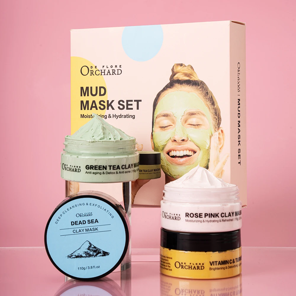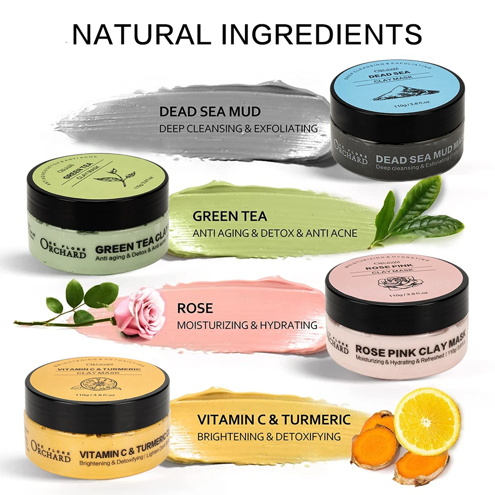 ORCHARD DE FLORE Moisturizing Clay Facial Mask for Skin Care,Deep Cleansing Turmeric Vitamin C Green Tea Dead Sea Rose Clay Mask