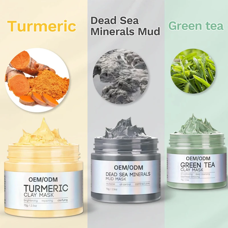 High Quality 70g Organic Clay Mask for Face Turmeric Dead Sea Green Tea Brightening Whitening Oil Control Mud Mask