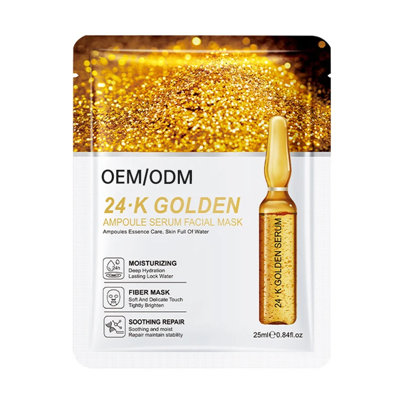 Hot Sale 25g Hyaluronic Acid VC 24K Golden Sheet Face Masks Hydrating & Whitening for All Skin Types