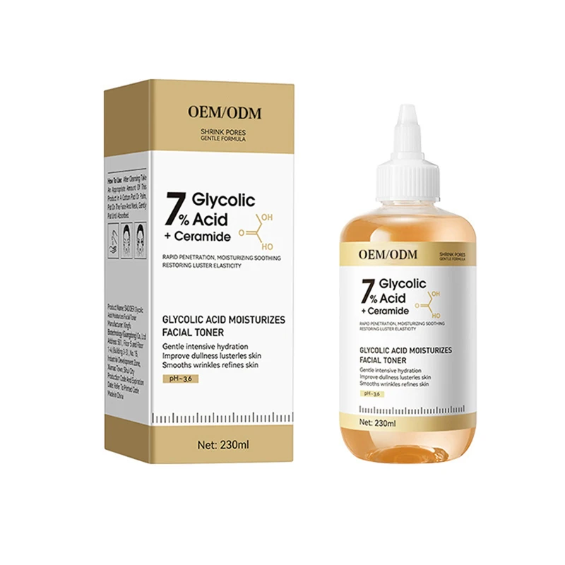 Private Label 230ml 7% Glycolic Acid Facial Toner Organic Ceramide Rejuvenation Hydrating Moisturizing Lightening Anti-Acne Face
