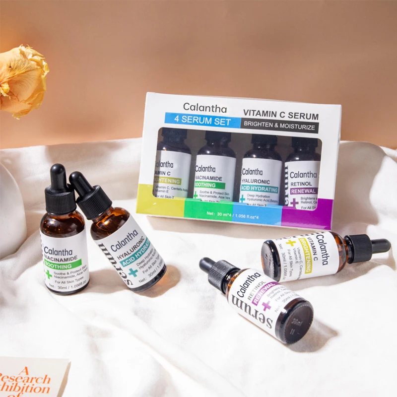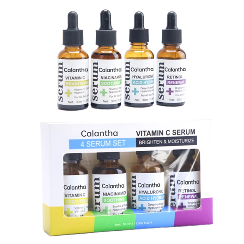4-Piece Vitamin C Serum Set 30ml Hydrating Firming Brightening Pore-Shrinking Anti-Wrinkle Anti-Aging Squalane Liquid Face Home