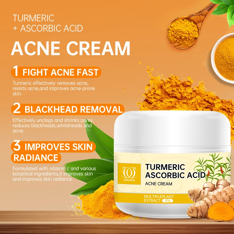 Private Label Acne Treatment Pimple Spots Exfoliating Repair Skin Herbal Turmeric Vitamin C Anti Acne Cream for Face