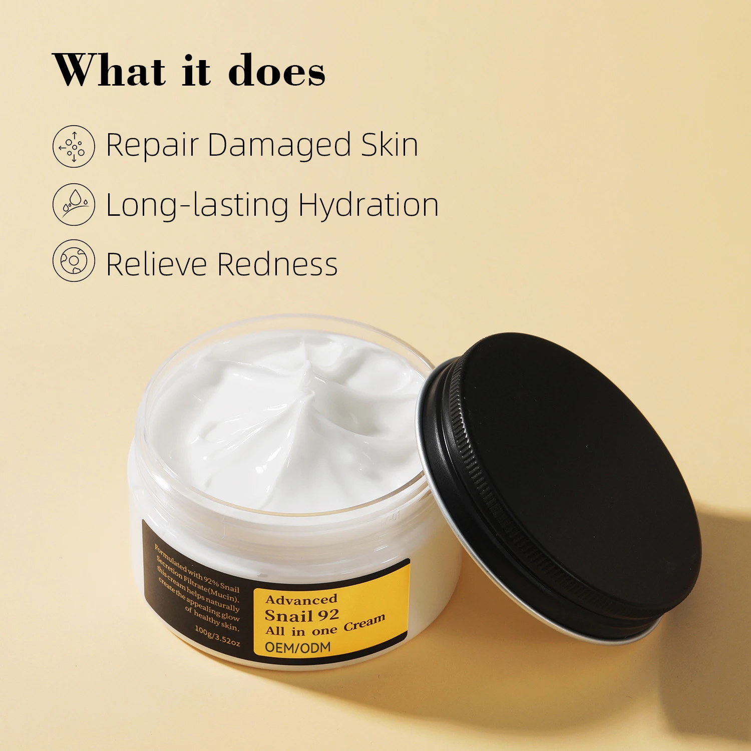 Private Label Vegan Snail Mucin 92% Hyaluronic Acid Moisturizer Daily Repairing Face Whitening Cream for All Skin Types