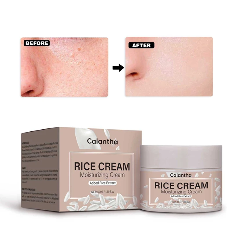Natural Organic Rice Cream Facial Skin Care Collagen Vitamin C Infused Moisturizing Anti-Aging Cream for Acne Whitening