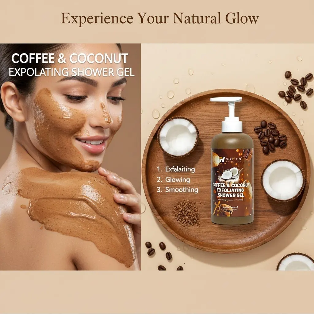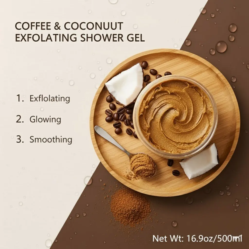 Private Label Herbal Coconut Coffee Scent Nourishing Bubble Seed Scrub Shower Gel with Great Price Low Price Low Price