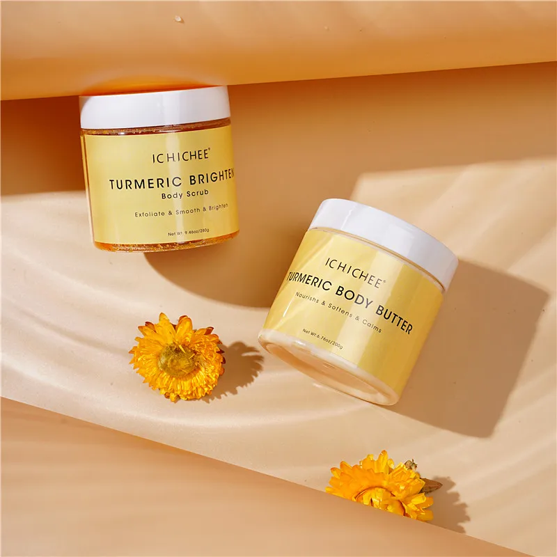 Brightening Skin Care Set Organic Turmeric Vitamin E Exfoliating Private Label Body Scrub Turmeric Scrub Low Price Low Price