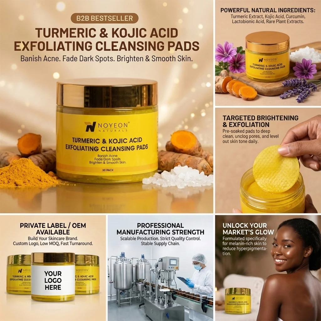 Private logo Turmeric and Kojic Acid Pads Exfoliating Face Cleansing Pad Oem Private Label Skincare