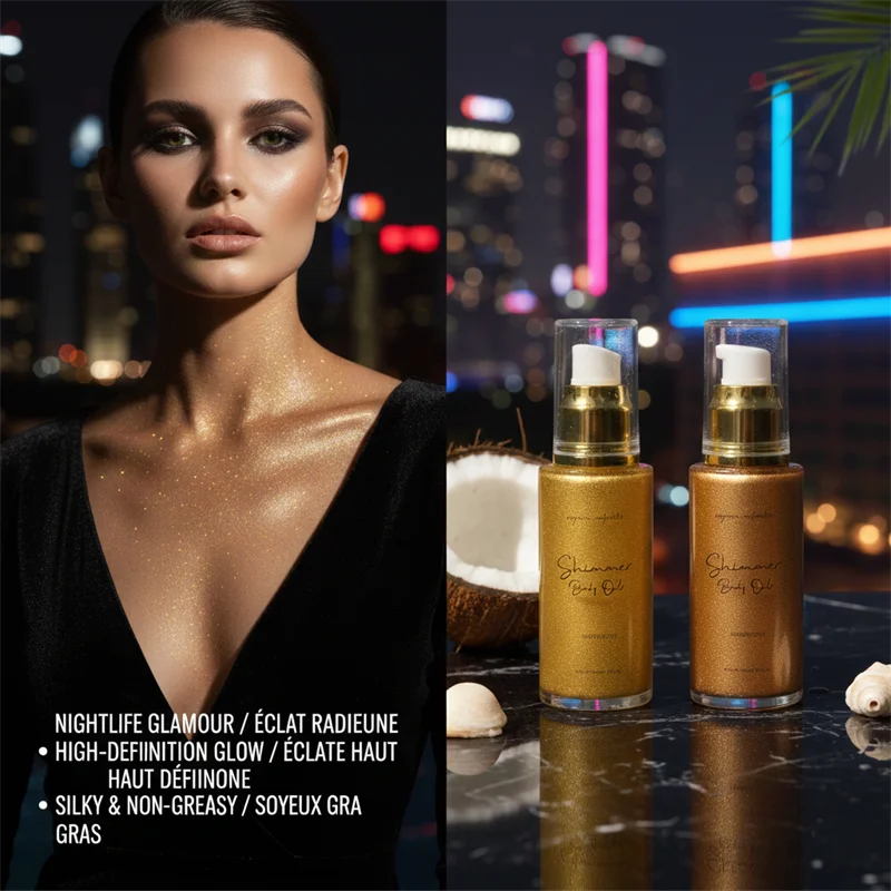 Golden Shimmer Body Oil With Coconut Mango for Holiday Gift Set Luxury Skin Care OEM/ODM