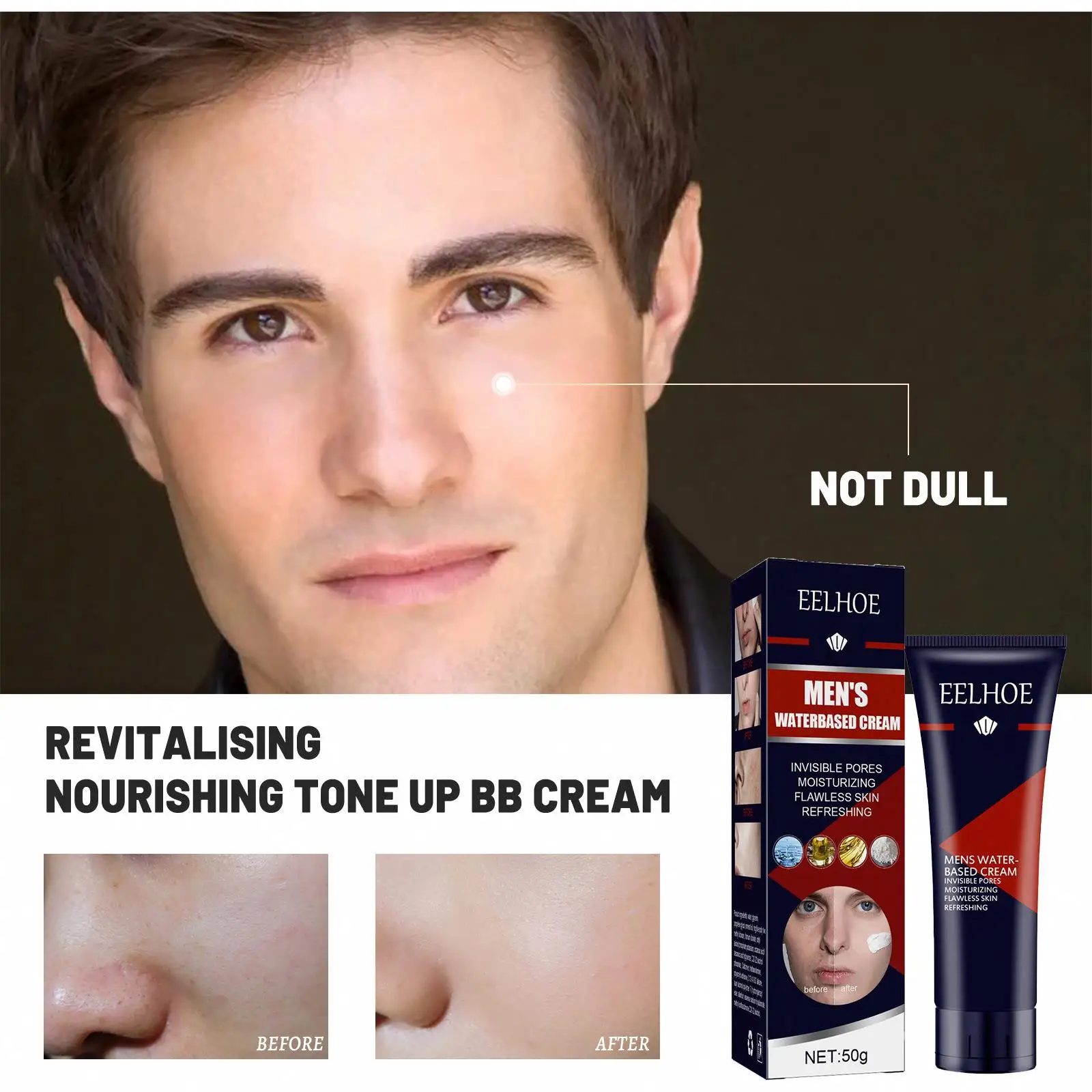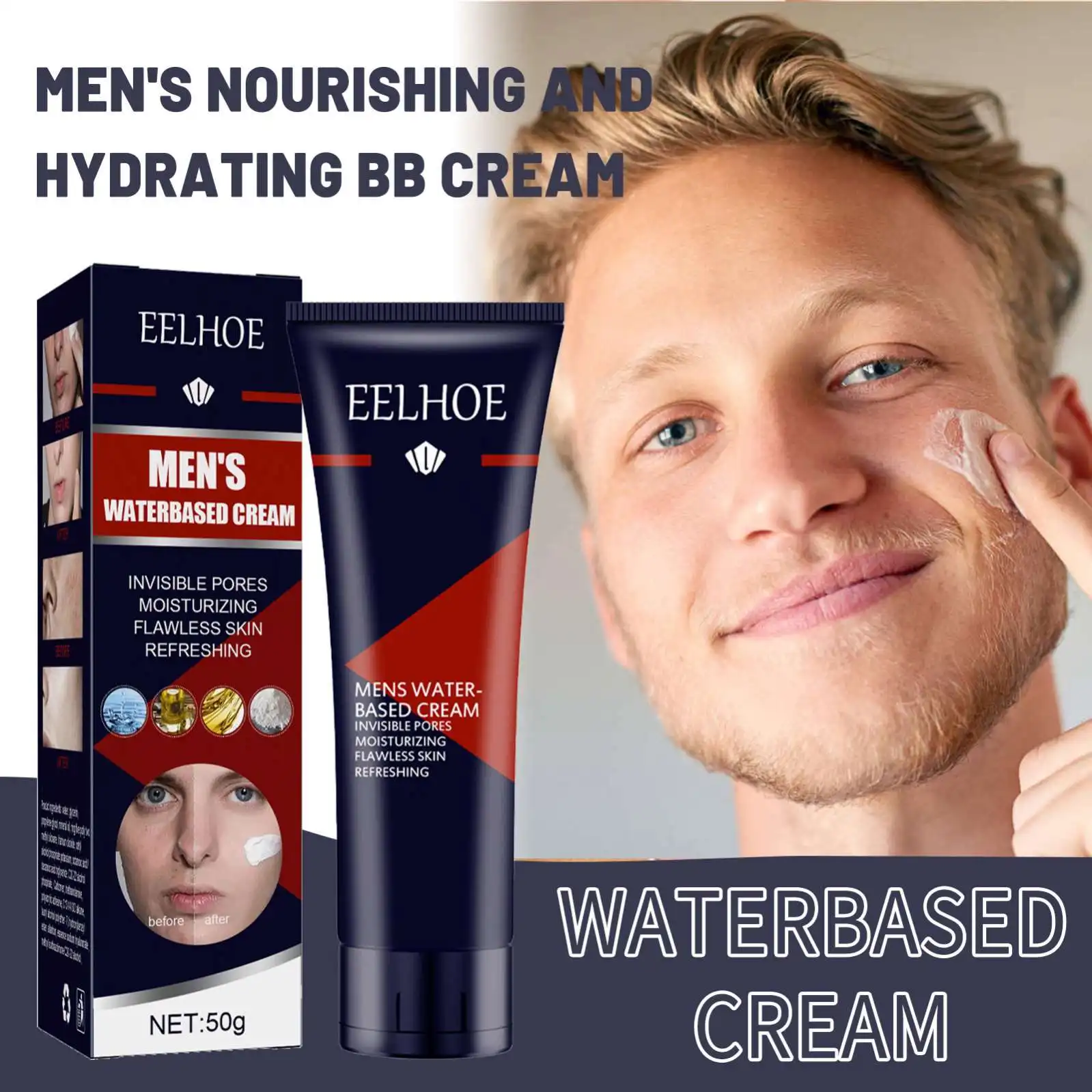 EELHOE Men's BB Cream for Waterproof Concealer Acne Mark Natural Nude Makeup Foundation Cosmetics BB Cream