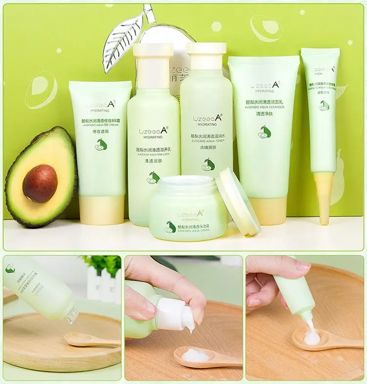 Wholesale Private Label 100% Natural Organic Aging Avocado Moisturizing Lightening Hydrating Skin Care Set