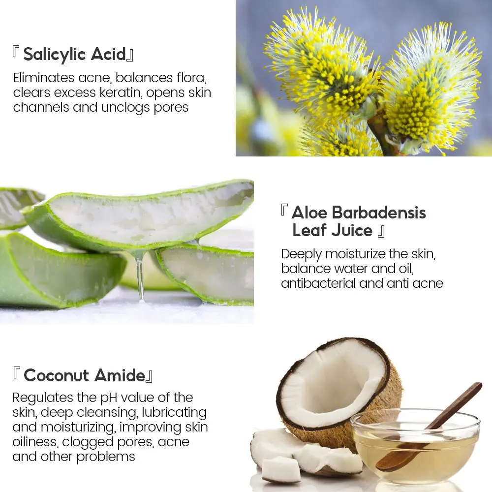 Private Label Pore Exfoliating Softening Skin Face Deep Cleansing Body Wash Bath Salicylic Acid Acne Treatment Black Soap