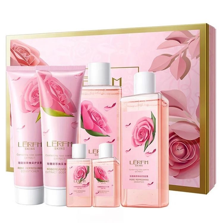 6pcs Rose Extract Shampoo Set Shower Gel Shampoo Body Lotion Care Series Body Care Bath Spa Kit Gift Set