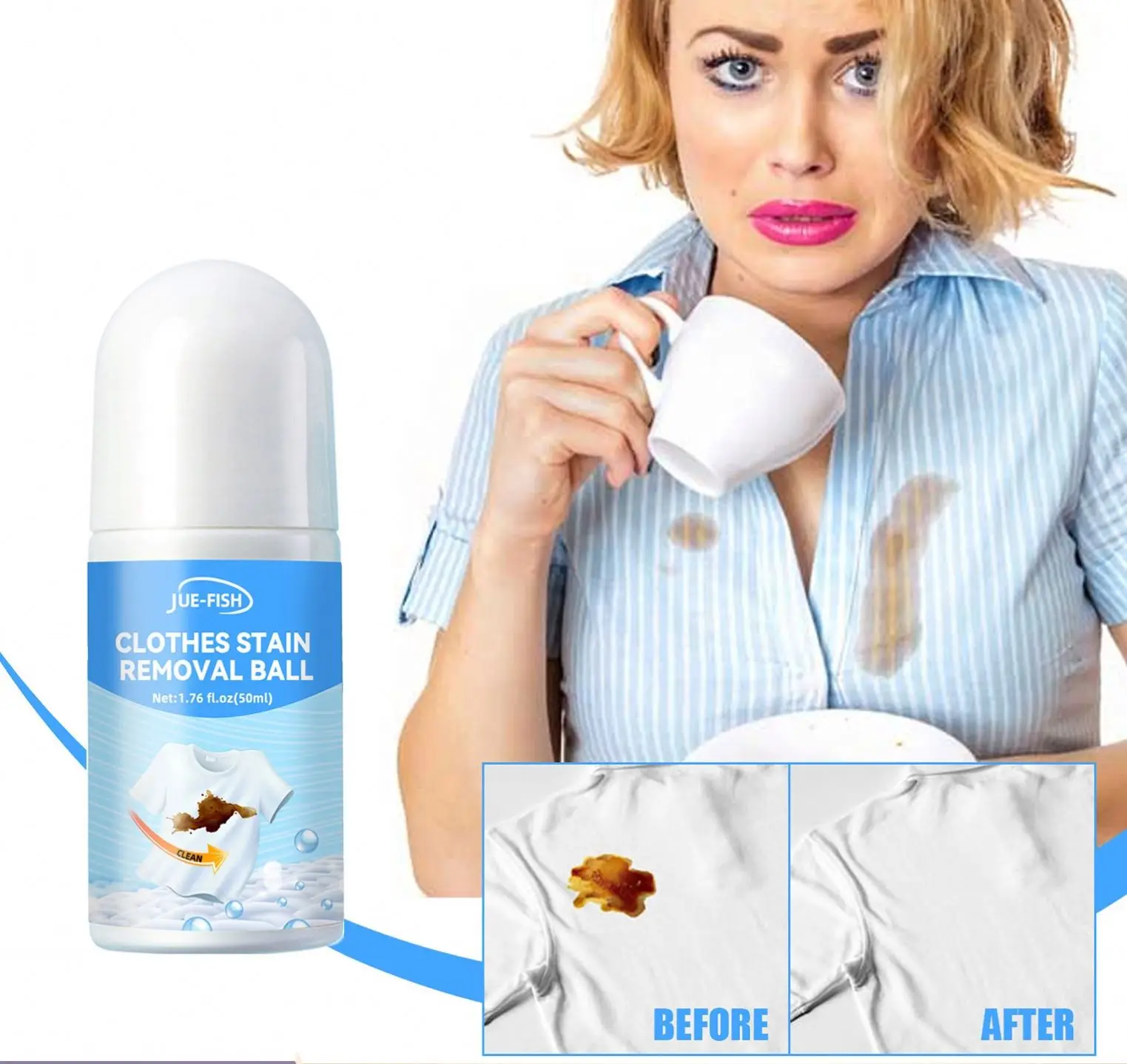 Jue-Fish Clothes Stains Portable Instant Dirt No-Wash Removal Special Cleaning Removing Stains Ball Roller Liquid Agent 50ml