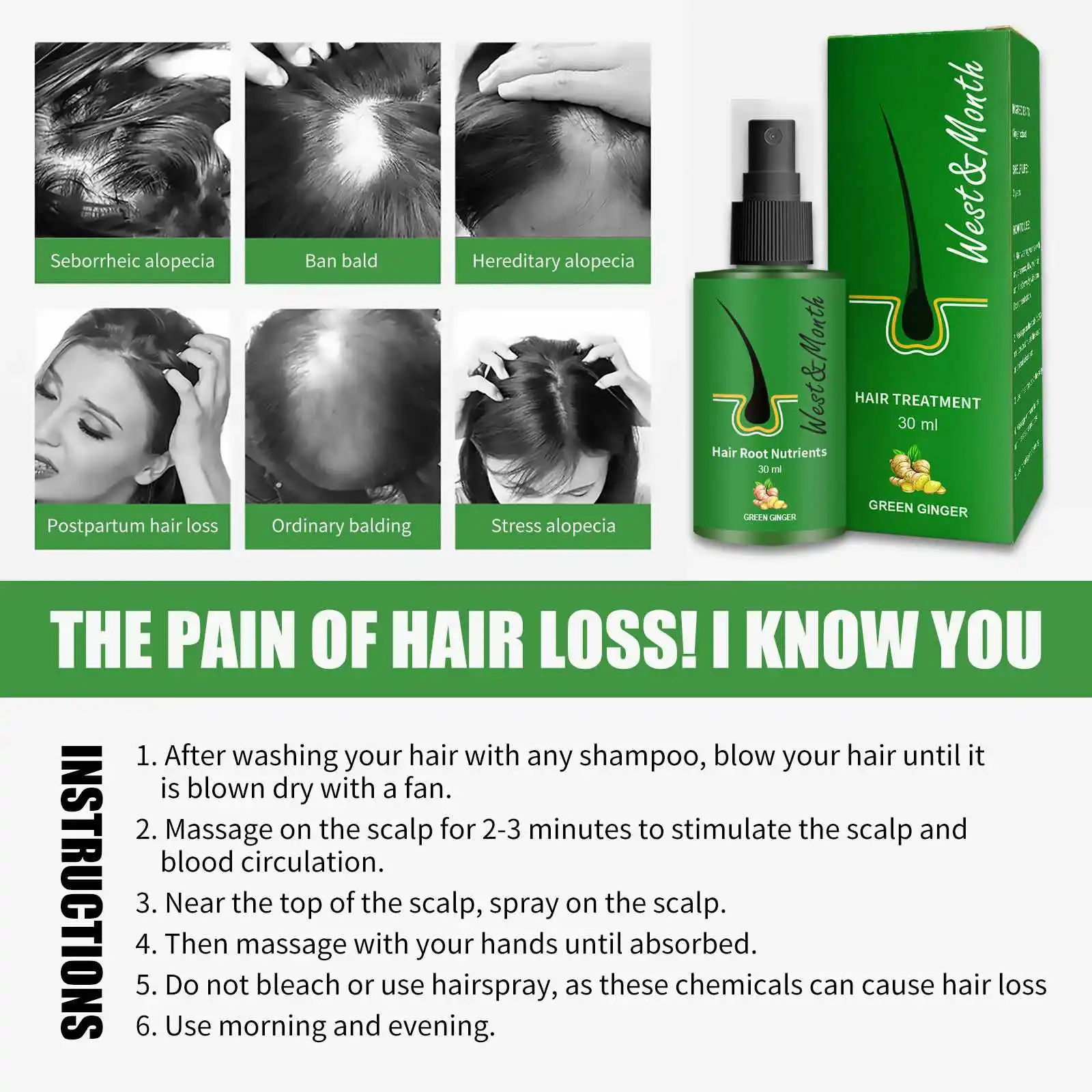 OEM Hair Growth Serum Spray Fast Liquid Treatment Scalp Follicle Anti Hair Loss Natural Beauty Health Hair Care