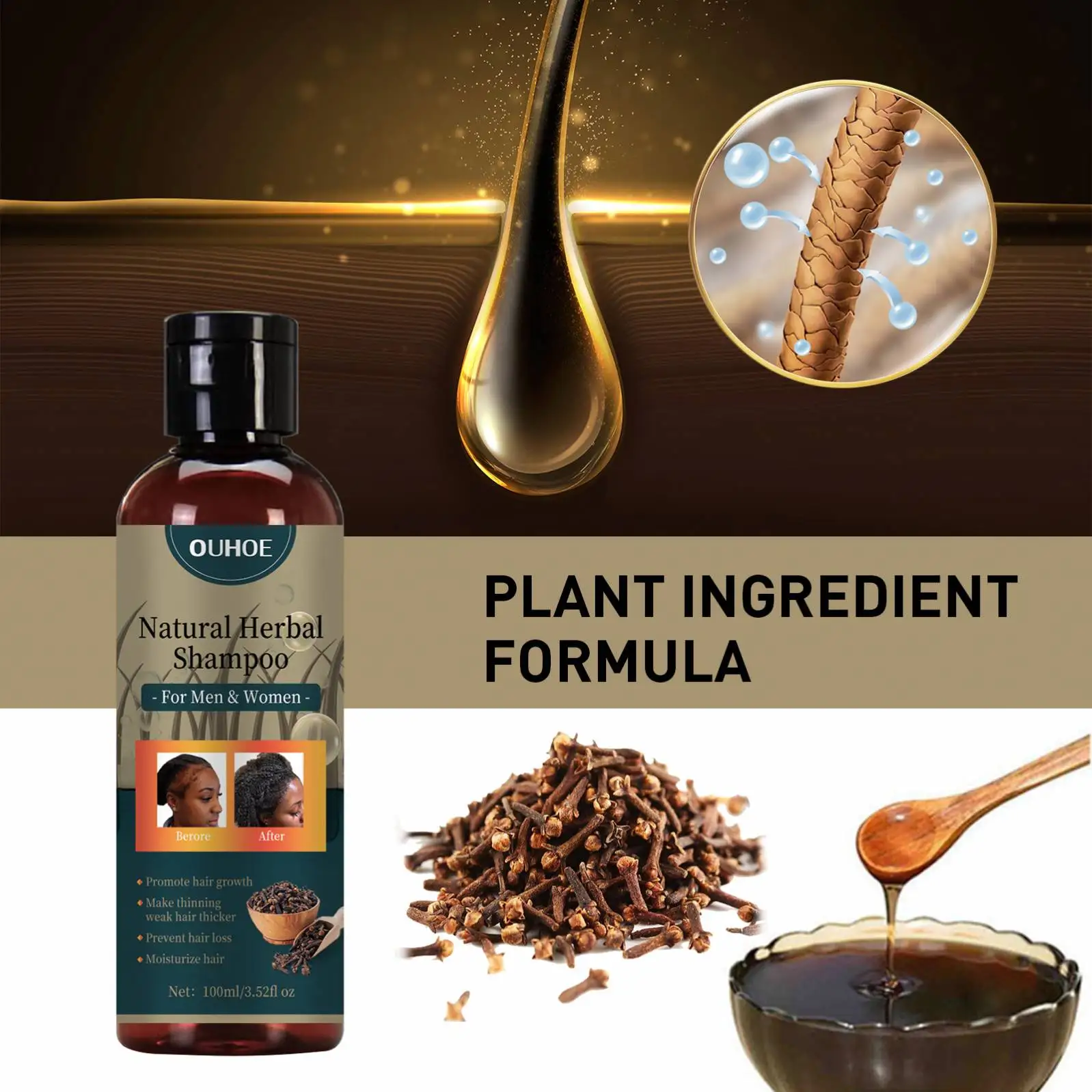 Ouhoe Private Label Natural Herbal Anti Prevent Hairloss Hair Growth Deep Cleaning Mild Massage Black Shampoo Hair Dye