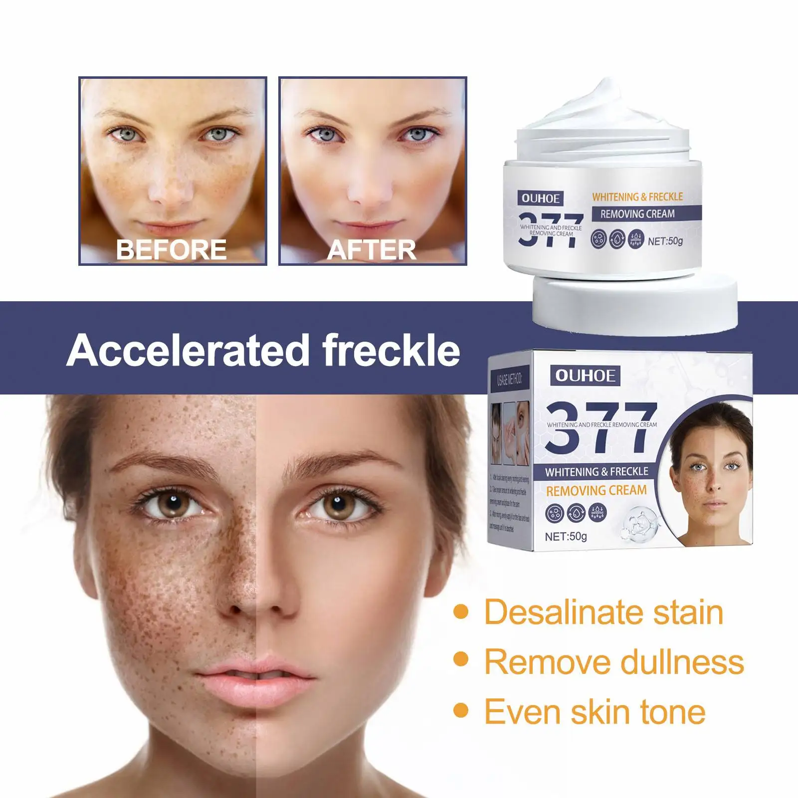 Ouhoe 377 Bright White Spot Removing Cream Fade Spots Melanin Even Skin Tone Brighten the Skin Moisturizing and Firming Cream