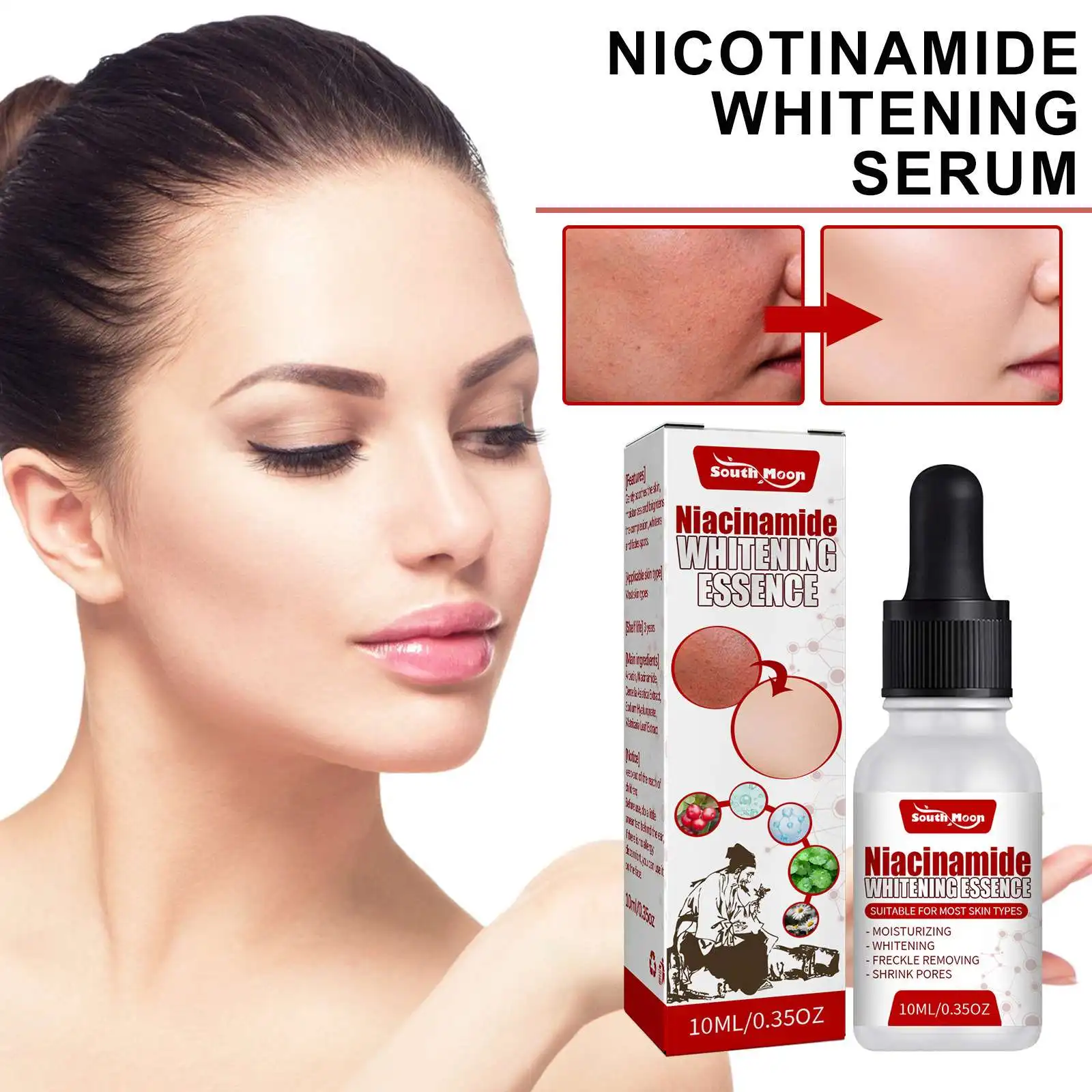 South Moon Niacinamide Face Open Pore Removing Whitening Face Serum Skin Care Removing Dark Spots for Oily Skin